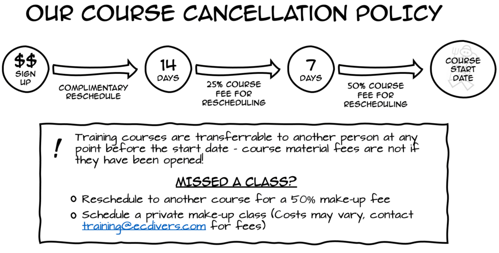 Private Scheduling is done through our training department at Training@ecdivers.com. Please contact us for pricing and sign-up information.