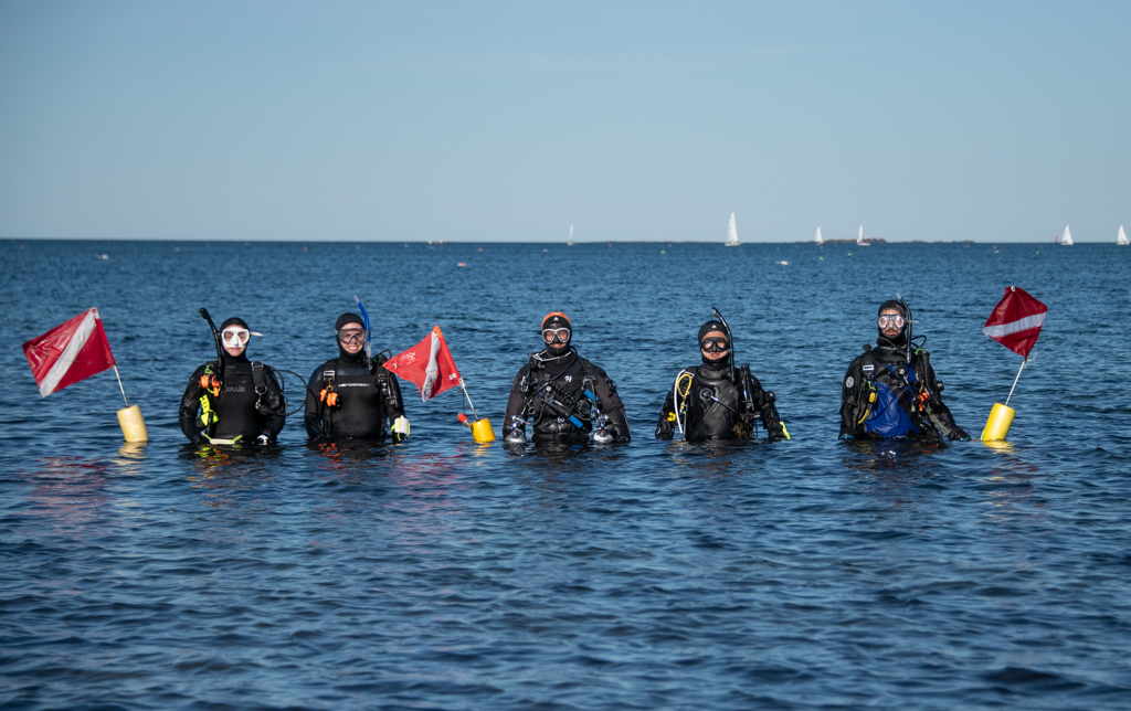 Back Beach is a quarter-mile stretch of sandy shore that slopes gently into the water, enclosed on either side by rocky points. It isn’t as pretty as its next-door neighbor, Front Beach, and much of it disappears underwater at high tide. Still, it’s one of the most popular dives in Massachusetts. There are typically restrooms open during the summer (on the street across from the beach; if these are closed you can find the Front Beach restrooms just down the street towards downtown on the beach-side. There are restaurants in the area as well. This is a good place to bring non-diving friends and family.