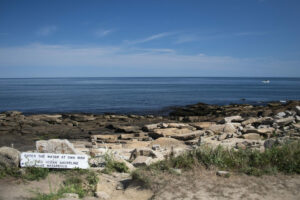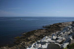 The alternative entry point involves a more circuitous route past the quarry and around the overlook to the northern point of Cape Ann where the heaped boulders give way to Granite Slabs. The walk is longer and less direct but this entry may be easier than Entry #1 and the underwater topography is more dramatic with a steeper drop to the sand.