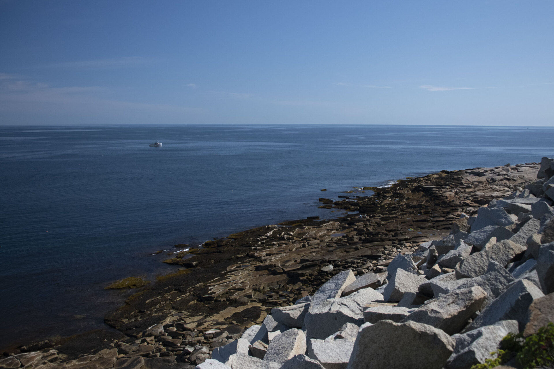 There are several places to enter the water along the boulder-strewn granite coast of the park. The entry is over hard and often slippery rock and can be challenging when the tide is low or there is any surge present. Challenges are exacerbated by the remote nature of the site. This site is considered one of the most challenging shore dives in New England and should not be attempted by divers who lack relevant experience of rocky, cold-water entries without an expert guide.