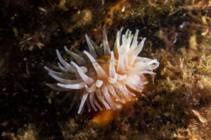 The topography of the Halibut shoreline is mirrored underwater, with a mix of granite slab and boulders cascading into the depths. Within a quarter-mile of the shore, you can reach depths of 100 FSW. The area attracts schools of large fish from striper to dogfish and larger species, such as basking sharks, have been reported here. On the rocks and sand, you can find ample fish and invertebrate life including the Northern Red anemone (Urtcina felina). Due to the exposure, this site can become washed out quite easily but when conditions are right this is a great dive.